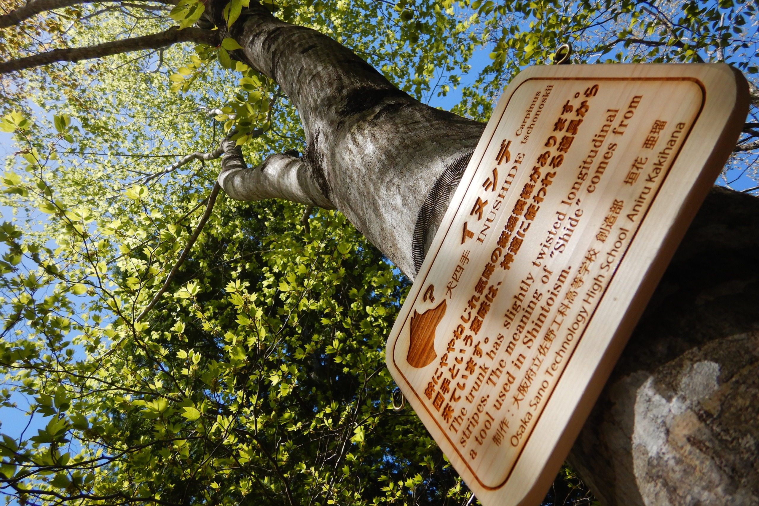 村内を通る世界遺産・熊野古道「小辺路(こへち)」沿いの景観林の魅力発信を目指すプロジェクト。大阪府立佐野工科高(泉佐野市)と連携し、小辺路沿いの約30種の樹木に、オリジナルの名札(樹名板)を設置しました。