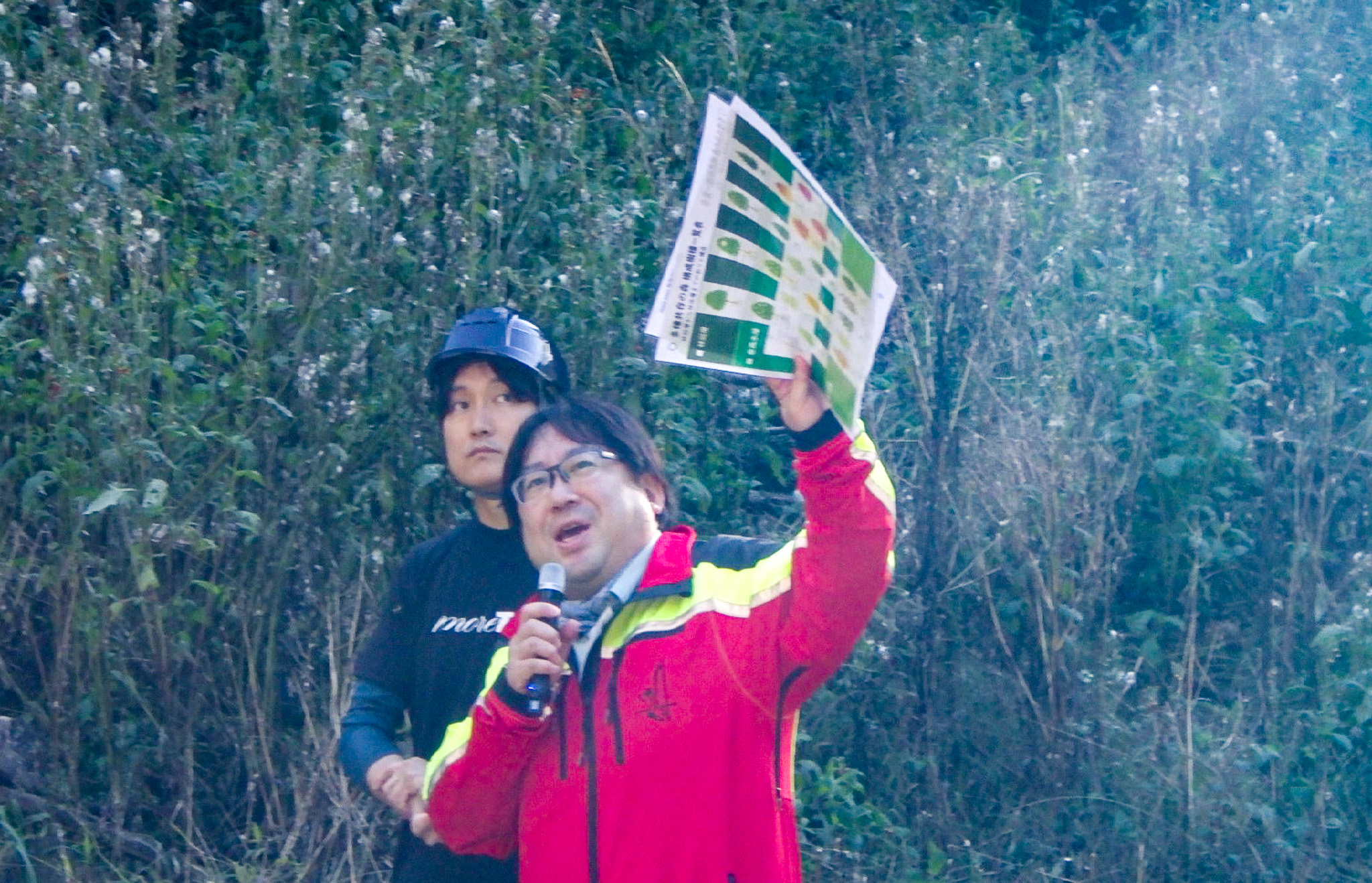 フォレスターである私からは、植樹の目的や苗木の特徴について説明し、 地域の立地環境や遷移段階に応じて多様な樹種を混植する「自然配植技術」により、「それぞれの木が、それぞれの役割を持ち、互いに支え合いながら生きていく森となる」と、その意義をお伝えしました。