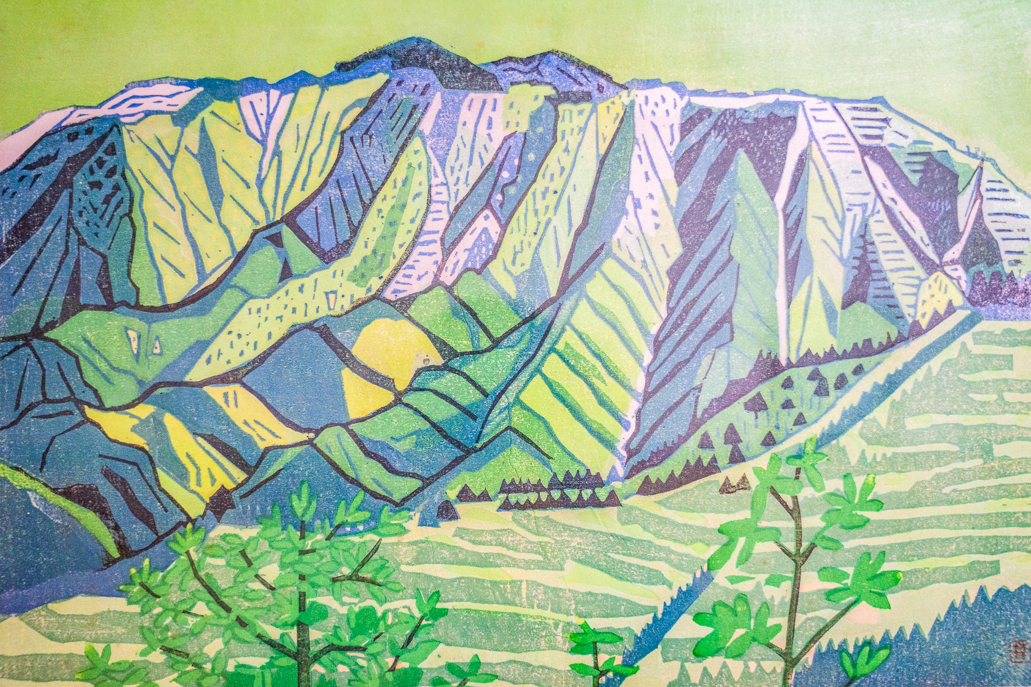中本さんにインタビューさせていただいた旧北股小学校に、学校が存続していた当時の校長先生が野迫川村を描いた一枚の絵が飾ってあり、思わずカメラのシャッターを切りました。そこには、中本さんが言うような、とても綺麗な山の風景がありました。実際にこんなふうに見えていたわけではないでしょうが、きっとこの先生の心象風景と現実が重なった姿なんだろうと、その瞬間思いました。